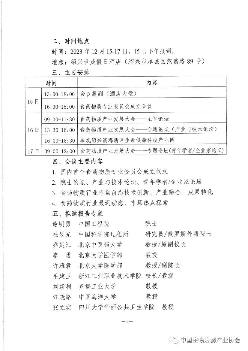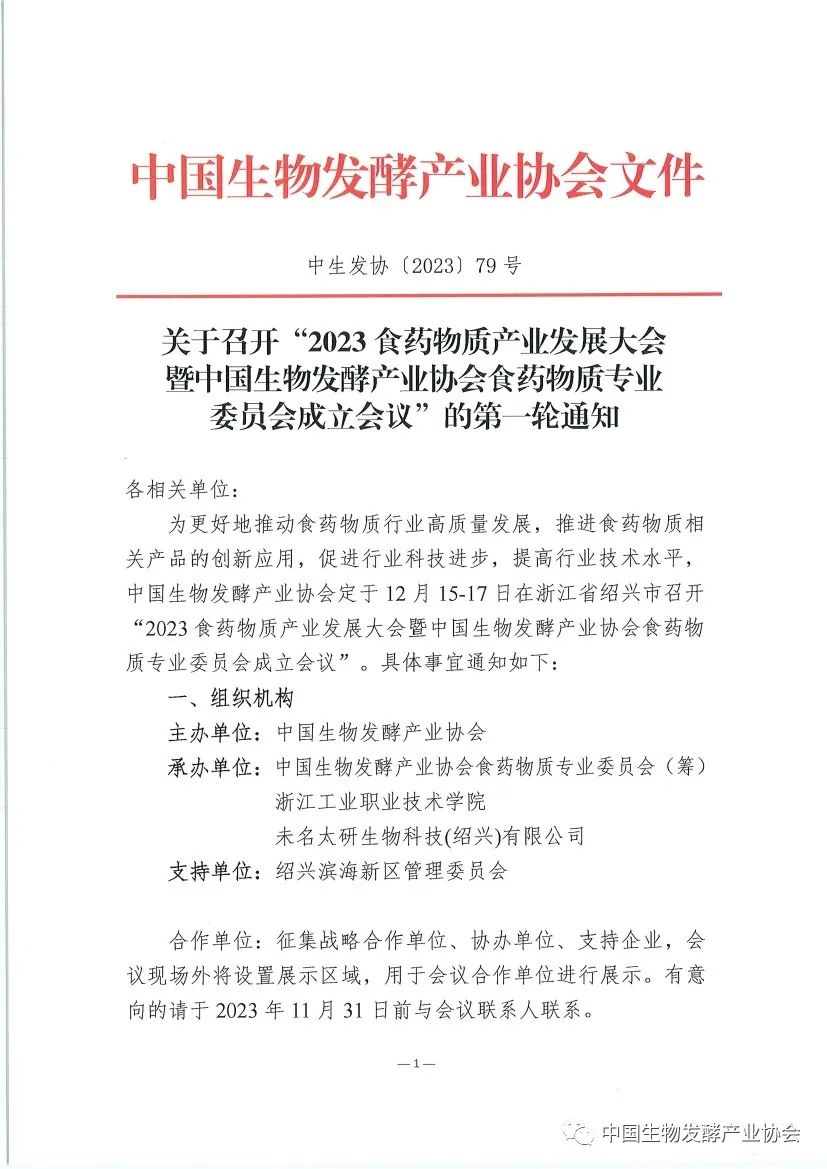 關(guān)于召開“2023食藥物質(zhì)產(chǎn)業(yè)發(fā)展大會 暨中國生物發(fā)酵產(chǎn)業(yè)協(xié)會食藥物質(zhì)專業(yè) 委員會成立會議”的第一輪通知