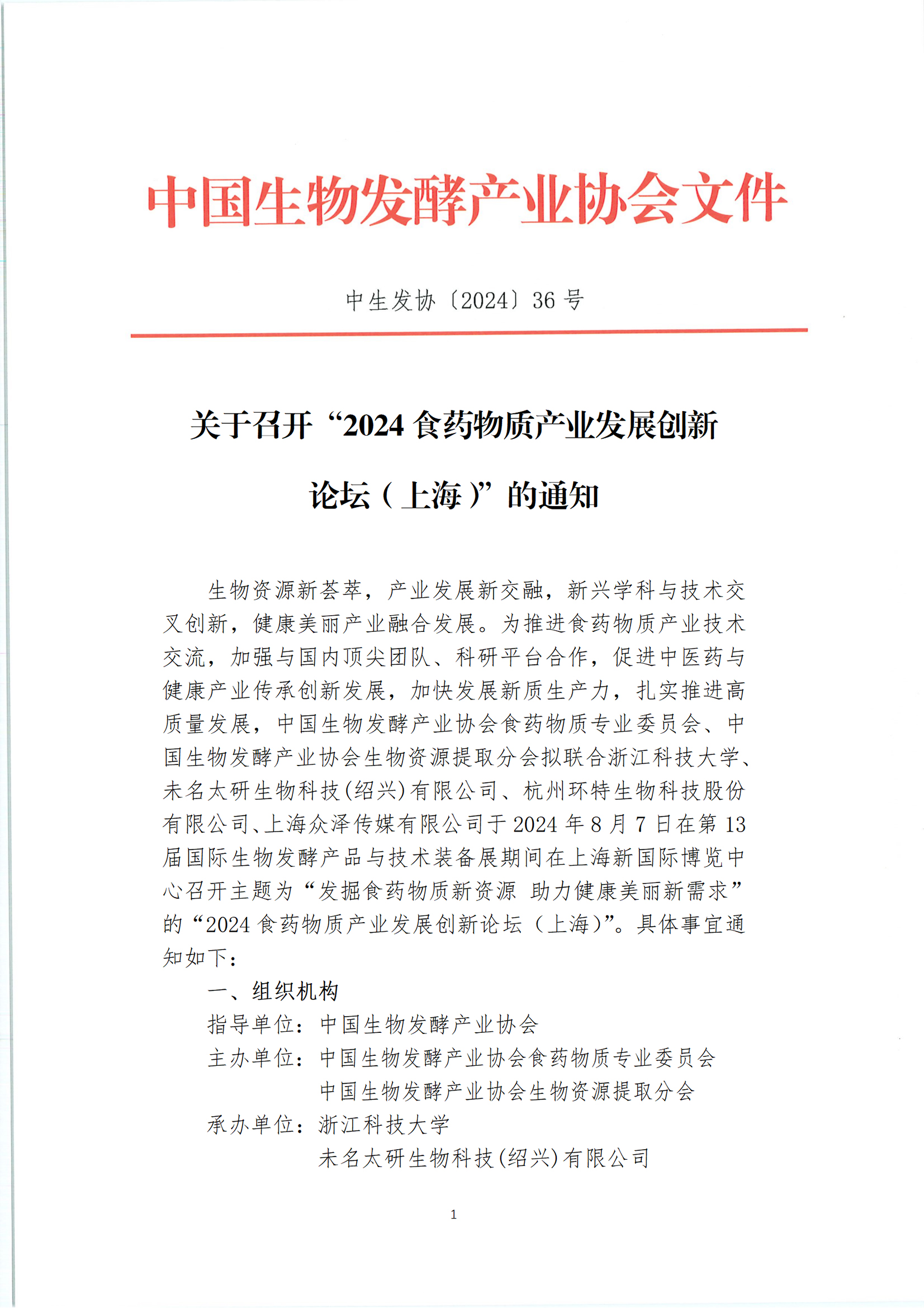 關(guān)于召開“2024食藥物質(zhì)產(chǎn)業(yè)發(fā)展創(chuàng)新論壇(上海)”的通知
